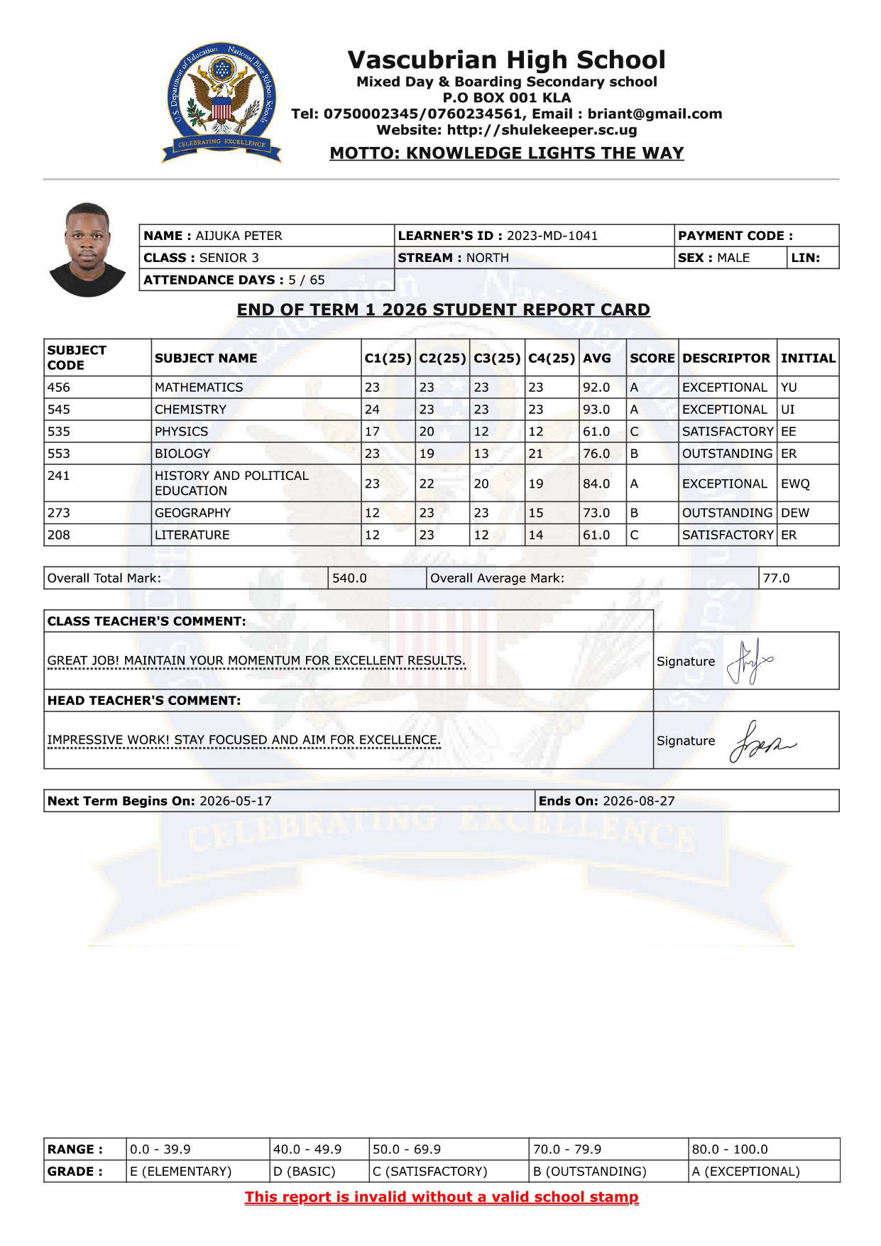 During his S.6 vacation, while working as a secondary school teacher, he was responsible for managing students' report cards. This experience inspired him to create a report card system to automate the generation of students' report cards. The system was later renamed ShuleKeeper and grew into Uganda’s most modern and comprehensive all-in-one school management system.
